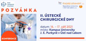 jménem MUDr. Martina Sauera, primáře Chirurgického oddělení Krajské zdravotní, a.s. – Masarykovy nemocnice v Ústí nad Labem, o.z., Vás srdečně zvu na II. Ústecké chirurgické dny, které se konají ve dnech 16.-17. 9. 2021 v Kampusu Univerzity Jana Evangelisty Purkyně v Ústí nad Labem. Vzdělávací akce je zařazena do kreditního systému dle platné legislativy pro lékaře.