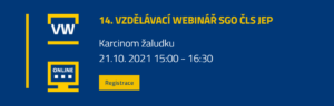 rádi bychom Vás pozvali na 14. vzdělávací webinář SGO: Diagnostická úskalí u karcinomu žaludku. Webinář se bude konat ON-LINE ve čtvrtek 21. 10. 2021 od 15 : 00 do 16 : 30 hod.